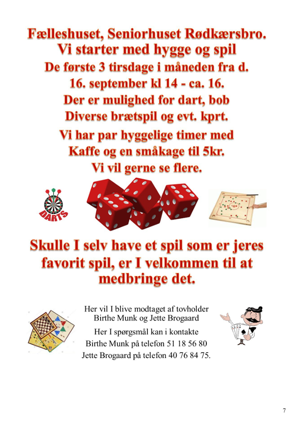 Tirsdag eftermiddag fra kl. 14.00 - 16.00 har der været spil i Fælleshuset, men fra december 2025 holder vi op.