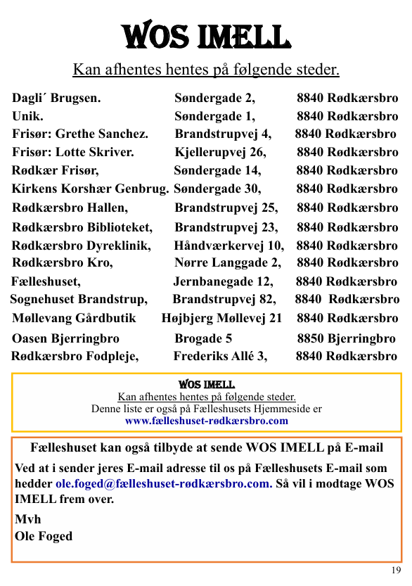 Sidste frist for indlevering af stof til næste nummer af WOS IMELL er Mandag d. 1. december 2025